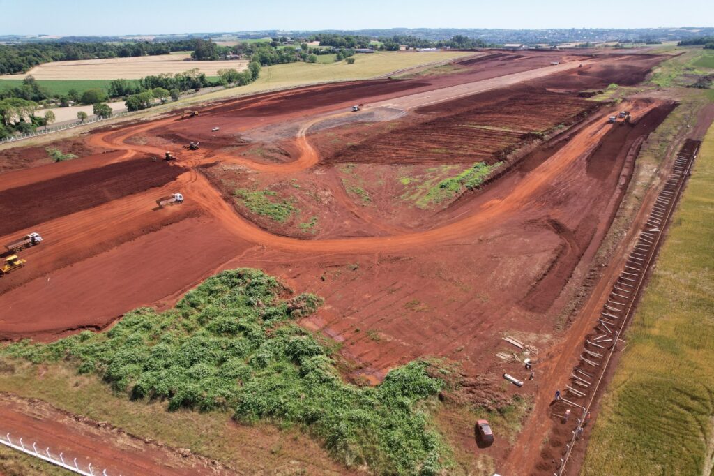 O serviço de terraplanagem tem previsão de ser finalizado no mês de janeiro. Até o momento já foram escavadas, transportadas e compactadas 70 mil cargas de terra, estando 50% dessa etapa concluída. Segundo o Engenheiro Luís Fernando Marzari, “Tínhamos um desnível muito grande da pista para a nova aérea, por isso, precisamos dessa grande obra de terraplanagem, mas estamos com todas as ações dentro do planejado e devemos estar com a obra pronta em julho do ano que vem”. Neste mês de novembro deve iniciar a primeira parte de testes das primeiras camadas asfálticas, principalmente nas regiões de taxiamento das aeronaves. O novo pavimento vai ter uma capacidade de suporte quatro vezes maior que o antigo para ser possível receber aeronaves maiores.