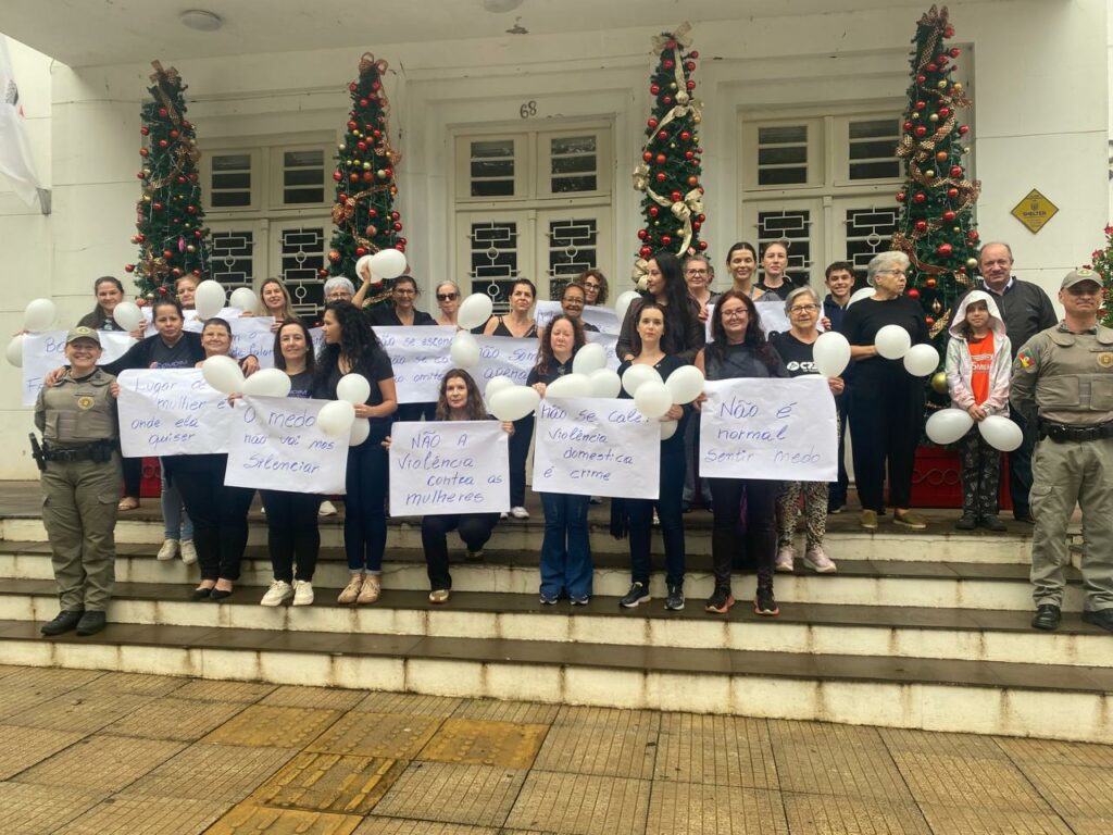 Mesmo sob chuva, vestidas de preto e segurando cartazes com mensagens pelo fim do abuso, do feminicídio e pela valorização da mulher, as participantes caminharam em união pela causa. No encerramento, balões brancos foram soltos, simbolizando paz, esperança e o desejo de um futuro sem violência. O grupo foi formado por mulheres de diferentes segmentos da sociedade: sindicalistas, rotarianas, advogadas, servidoras públicas, professoras aposentadas, clubes de mães e comerciárias. A Patrulha Maria da Penha acompanhou a caminhada, garantindo a segurança e reafirmando seu compromisso no enfrentamento à violência de gênero. A atividade foi organizada pela Assessoria de Políticas Públicas para as Mulheres, Secretaria de Desenvolvimento Social e Sindicato dos Comerciários e COMDIM.