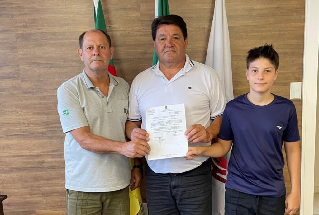O prefeito Timirinho recebeu, em ato oficial, a família de João Pereira Duarti, na manhã desta terça-feira(30). Na oportunidade, o filho José Elói Pereira Duarti e o neto de 12 nos, Thiago Duarti, receberam do Prefeito o documento que oficializa a denominação de uma via pública em homenagem a João Pereira Duarti.