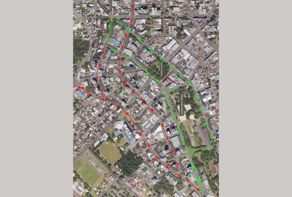 A outra grande alteração será entre a rua Santos Dumont e a Rua Santa Rosa. Na Santos Dumont, do colégio Concórdia até a Avenida Santa Cruz(rua da Escola da Paz) a via terá mão única também, sendo sentido Concórdia/Santa Cruz). Assim como, a rua Santa Rosa (a partir da Castelo Branco) será mão única até o Concórdia(passando pelo Colégio Dom Bosco).(vermelho no mapa)