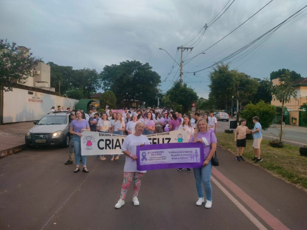 Na noite desta quarta-feira (11), as Escolas Municipais de Educação Infantil do Bairro Cruzeiro realizaram a 4ª Caminhada pela Paz. A ação foi realizada em prol da conscientização sobre a não violência contra a mulher. A caminhada reuniu alunos, famílias, profissionais da educação e comunidade, com saída em frente da empresa Toda Hora e encerramento na Praça Pedro Odeon. O momento foi marcado por reflexões sobre respeito, empatia e valorização da vida das mulheres.