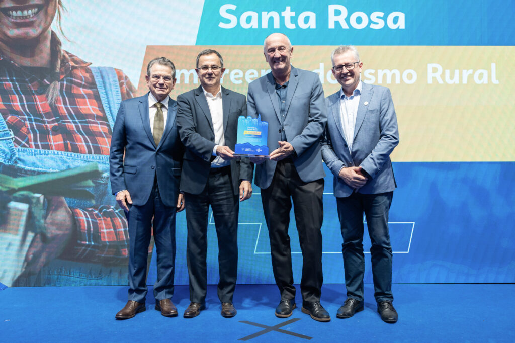 O município de Santa Rosa celebrou uma importante conquista na noite desta quinta-feira (16), em Porto Alegre. O prefeito Anderson Mantei e o vice-prefeito Aldemir Ulrich participaram da XIII edição do Prêmio Sebrae Prefeitura Empreendedora. Santa Rosa venceu na categoria Empreendedorismo Rural com o projeto “Caminhos e Sabores da Soja”. A iniciativa concorreu com diversas propostas do Rio Grande do Sul e se destacou pela excelência na valorização do meio rural.